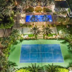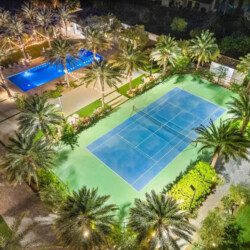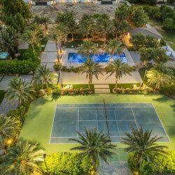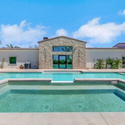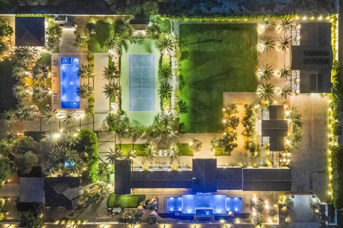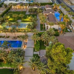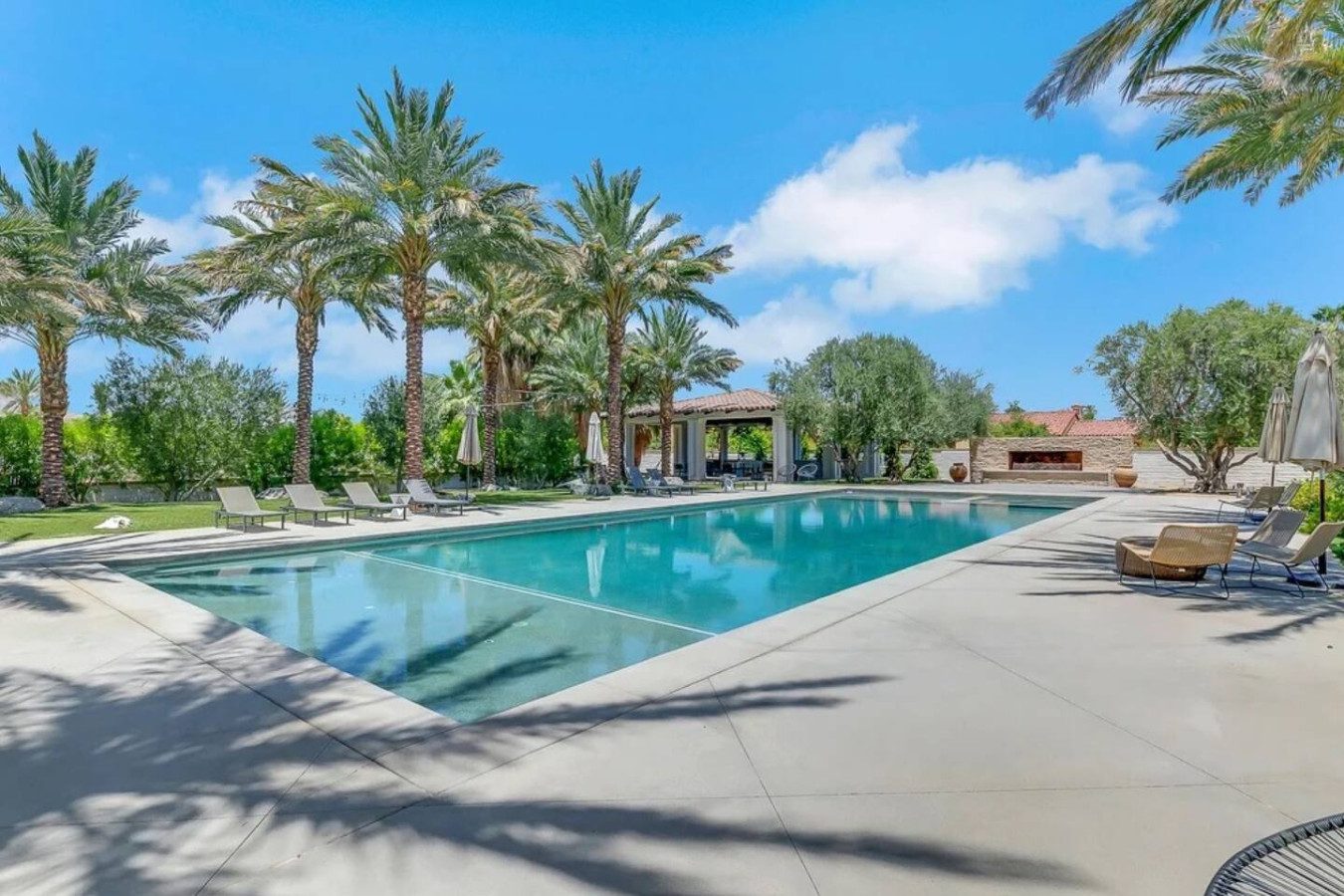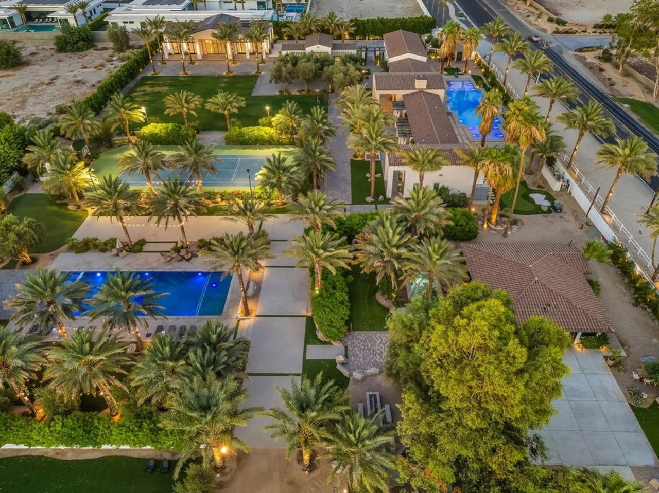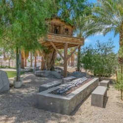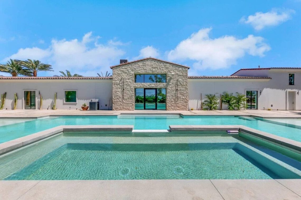 The outdoor grounds are equally impressive, curated for both relaxation and entertainment. Guests can enjoy three resort-style pools (including two expansive pools and an intimate spool), a private tennis court, a putting green, and a charming treehouse. At the heart of the property, a spacious covered gazebo with a built-in BBQ and elegant lounge and dining areas sets the stage for effortless al fresco living—perfect for sun-soaked afternoons or evenings under the desert sky.