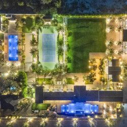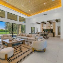 Designed with sophistication and versatility in mind, Cache Estate also serves as a premier setting for weddings and large-scale events. The property features a striking modern barn-style venue with soaring vaulted ceilings and dramatic floor-to-ceiling glass doors that open fully to create a seamless indoor-outdoor flow. Surrounded by lush green areas ideal for ceremonies, receptions, and celebrations, the estate is designed with both elegance and functionality in mind—making it the perfect setting for unforgettable events or a luxurious private escape.