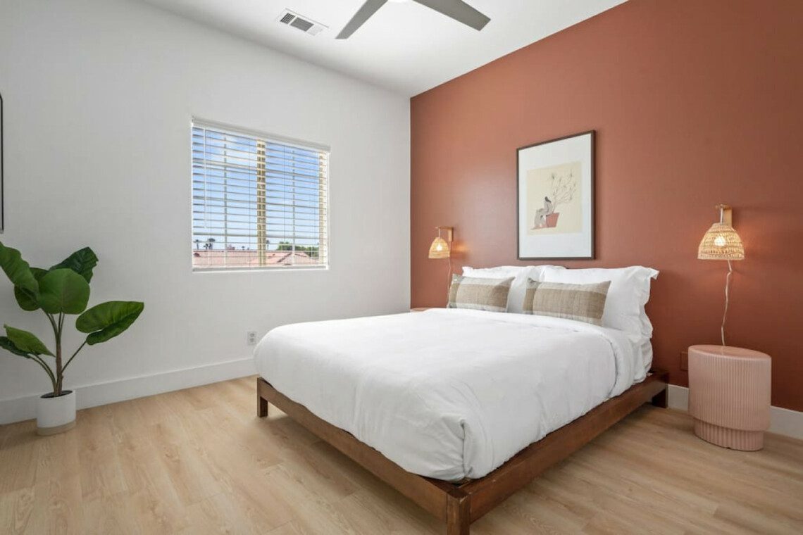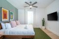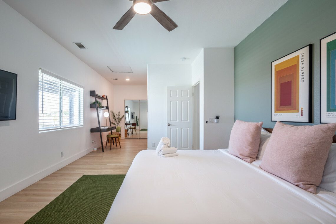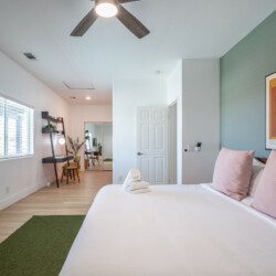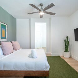 ●Bedroom #6 (bonus room): Queen bed, night stands, sconces, 50″ smart tv, ceiling fan