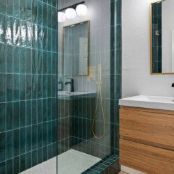 ●Bedroom #4: Queen bed, ensuite bath, night stands, sconce lights, 50″ smart tv, ceiling fan, closet, luggage rack, *upstairs