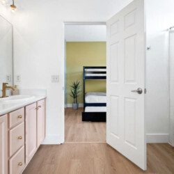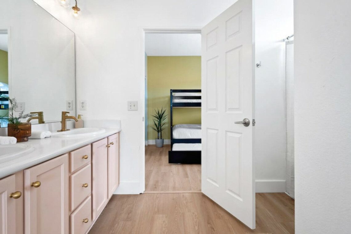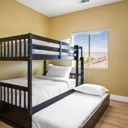 ●Bedroom #3: Full over full bunk with twin trundle (top bunk for 2 children or 1 adult), 50″ smart tv, closet, luggage rack, ceiling fan, Jack-&-Jill bath, *upstairs