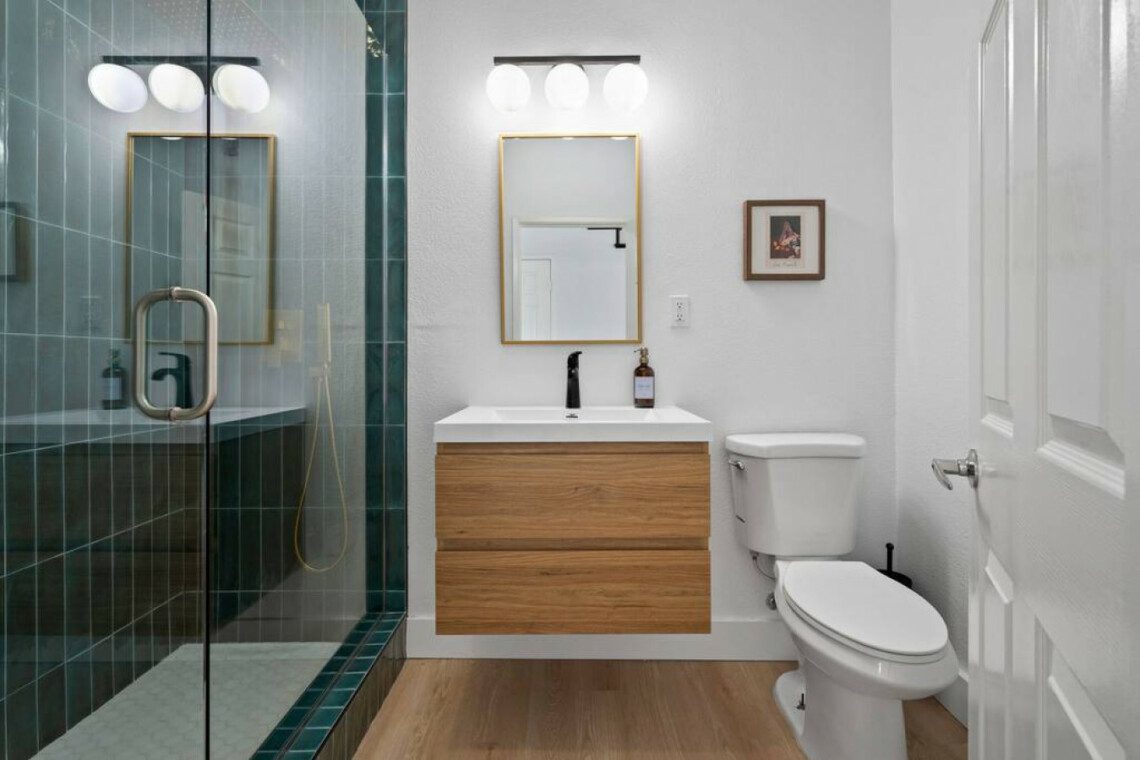 ●Bath #1: Full bath with separate tub, located in primary bedroom #1, upstairs