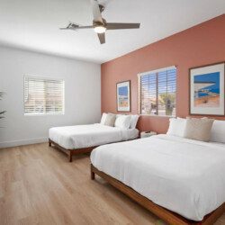 ●Bedroom #5: Double queen beds, night stand, table lamp, 50″ smart tv, ceiling fan, closet, luggage racks, *downstairs