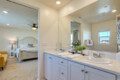 ●Bedroom #1 (primary): King bed with ensuite bath, nightstands, table lamps, dresser, smart tv, ceiling fan, closet, luggage rack