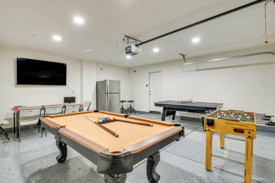 Indoors, our converted garage game room is a hub of entertainment with a brand-new pool table, ping pong table, and poker table. Whether you’re hosting lively competitions or enjoying downtime together, this space promises hours of fun and relaxation for guests of all ages.
