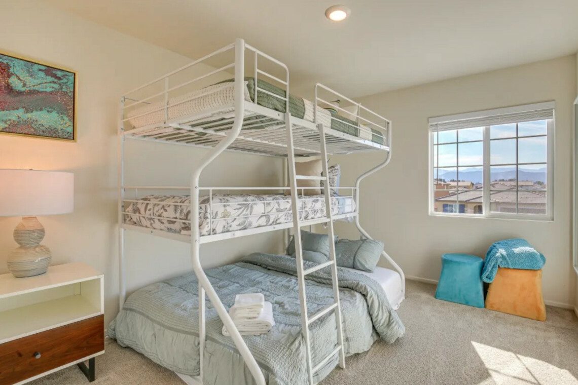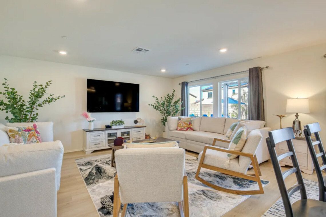 Welcome to The Entertainer’s Paradise, our newly built, 5 bedroom, 3 bathroom home offers ample space for groups of up to 14 guests. Nestled in a new community just 30 minutes from downtown Palm Springs, our modern oasis features a brand-new pool and an array of amenities for your comfort and enjoyment. Whether you’re here to relax by the pool, explore nearby attractions, or attend festivals like Coachella, our home provides the perfect blend of luxury and convenience for your desert getaway.