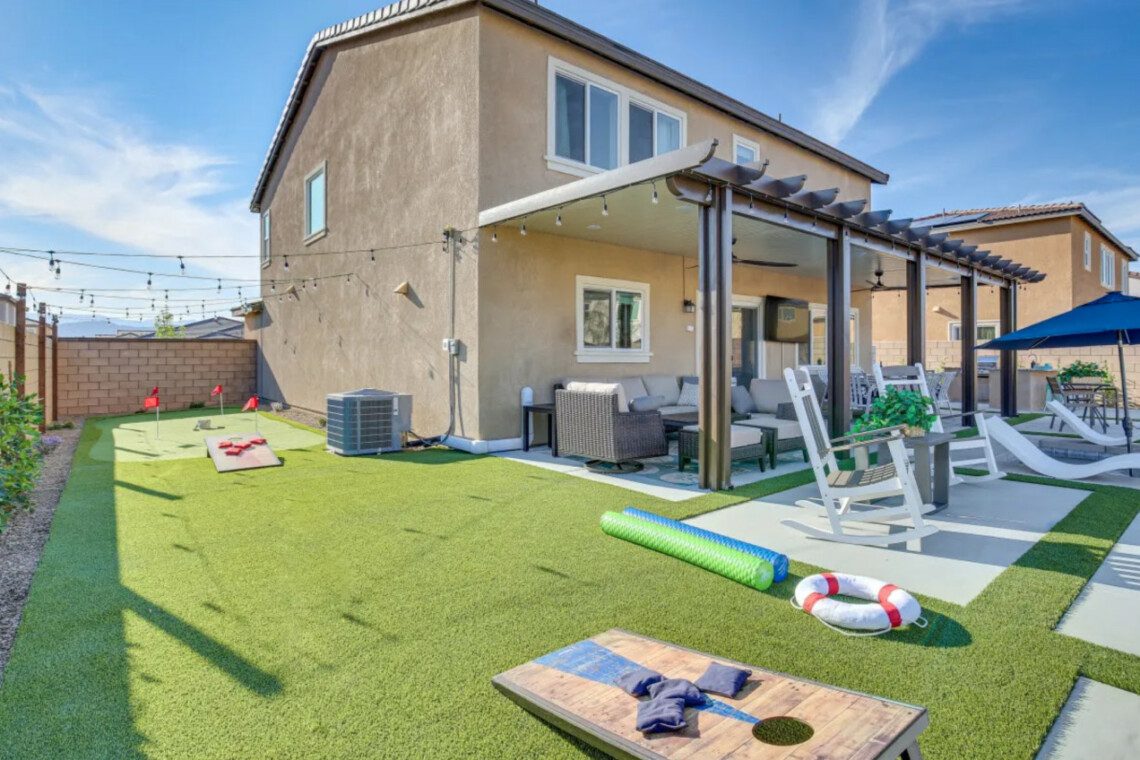 Discover the ultimate retreat for your large group getaway in Coachella Valley at our pristine, newly-built home! Boasting five bedrooms, three bathrooms, and accommodations for up to 14 guests, our spacious haven is designed with your comfort and enjoyment in mind. Nestled in a peaceful new community, Entertainer’s Paradise offers a tranquil escape with easy access to nearby conveniences and attractions.