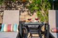 ●BBQ: Natural gas stainless steel grill, 2 pool chaise loungers, additional seating
