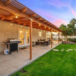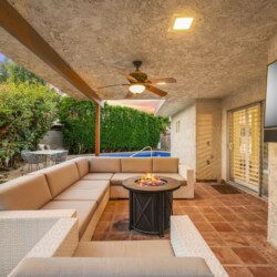 The best feature of the home its backyard layout with all its amenities. There are multiple points of entry to the backyard: from the living room, master bedroom, common family area, and lastly from a bedroom. The large pool and spa have recently been upgraded to pebble tec finishes, LED lighting, and a new automation system that can be controlled from your phone. There is a propane grill located in the patio with a separate dining table to enjoy. Around the other side of the pool, you sit back on a spacious outdoor sectional while tuning into your favorite show with the 50” smart TV in view. There is no shortage of seating and lounge area in the backyard whether it is by the pool or around the newly planted desert landscaping.