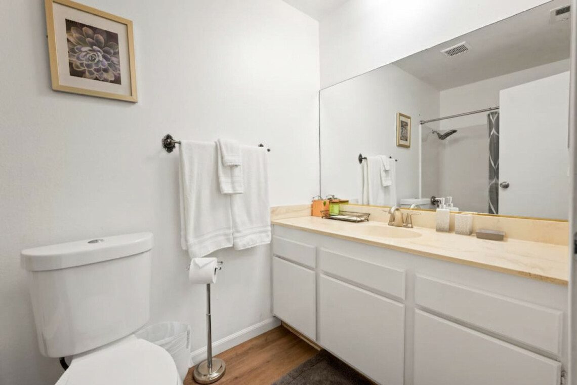 This home accommodates up to 10 guests with 4 bedrooms and 3 bathrooms. Additional spaces include a fully stocked kitchen, living room, dining room, den, laundry area, and garage. Our kitchen is stocked with an extensive list of small appliances, cookware, dinnerware and utensils needed to prepare almost any family meal. We provide a starter kit of seasonings including salt, pepper and olive oil. Please inquire with our team if you would like a complete list of all our cookware and small appliances.