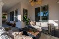 ●Covered Patio: Conversation seating around propane fire-pit table, double benches, ceiling fan