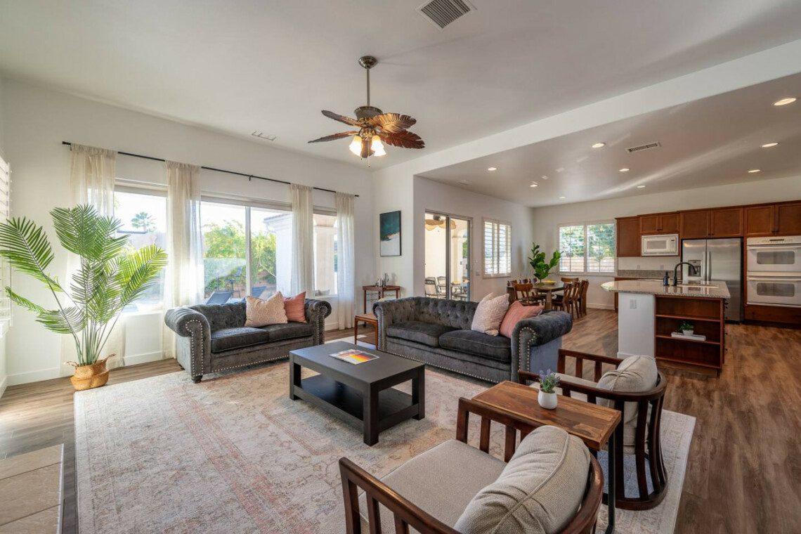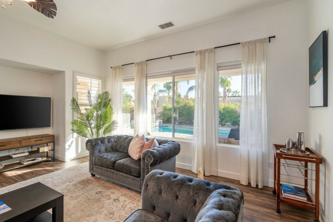 Welcome to Paradise Palms! Discover Palm Springs luxury at our spacious retreat, where an open kitchen and chic living area open to a private pool and spa. Just moments from downtown, this 4-bedroom oasis offers a stylish retreat with easy access to the vibrant city scene. Your perfect desert escape awaits – relaxation and sophistication meet just steps away from downtown’s attractions.