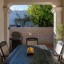 ●BBQ: Propane stainless steel grill, 6-person table for al fresco dining, ceiling fan