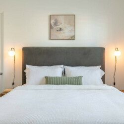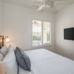 ●Bedroom #4: King bed, side tables, sconces, 50″ smart tv, ceiling fan, closet, luggage rack