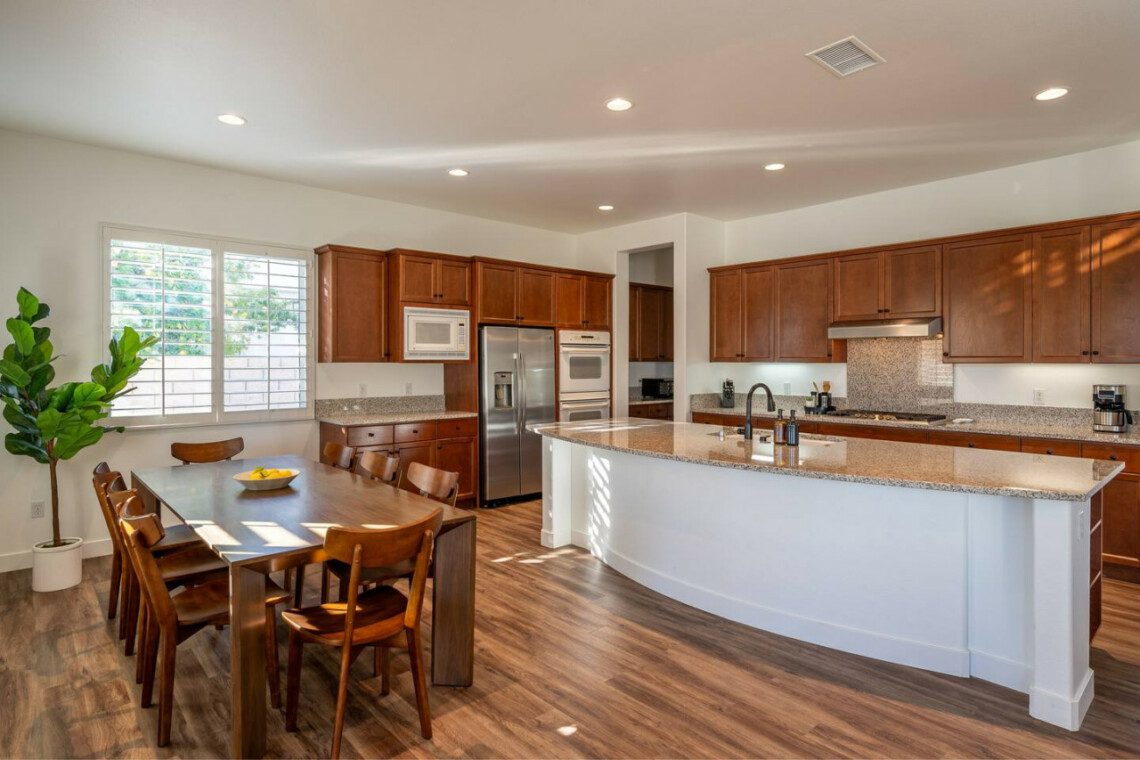 Step into luxury comfort at our stunning 4-bedroom, 3.5-bathroom home. The home also has an office that has been converted into a bonus room with a King bed in order to maximize occupancy. The interior boasts a harmonious blend of modern elegance and comfort. The open kitchen concept invites culinary creativity, while the spacious bedrooms offer retreats of relaxation. High ceilings amplify the sense of space, and the bonus room doubles as an additional bedroom. Newly decorated with tasteful touches, this home provides a sophisticated and inviting atmosphere, ensuring a delightful stay for everyone.