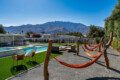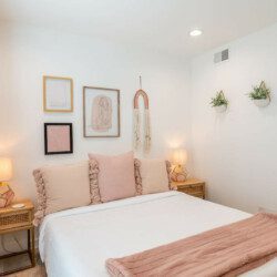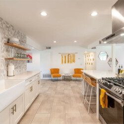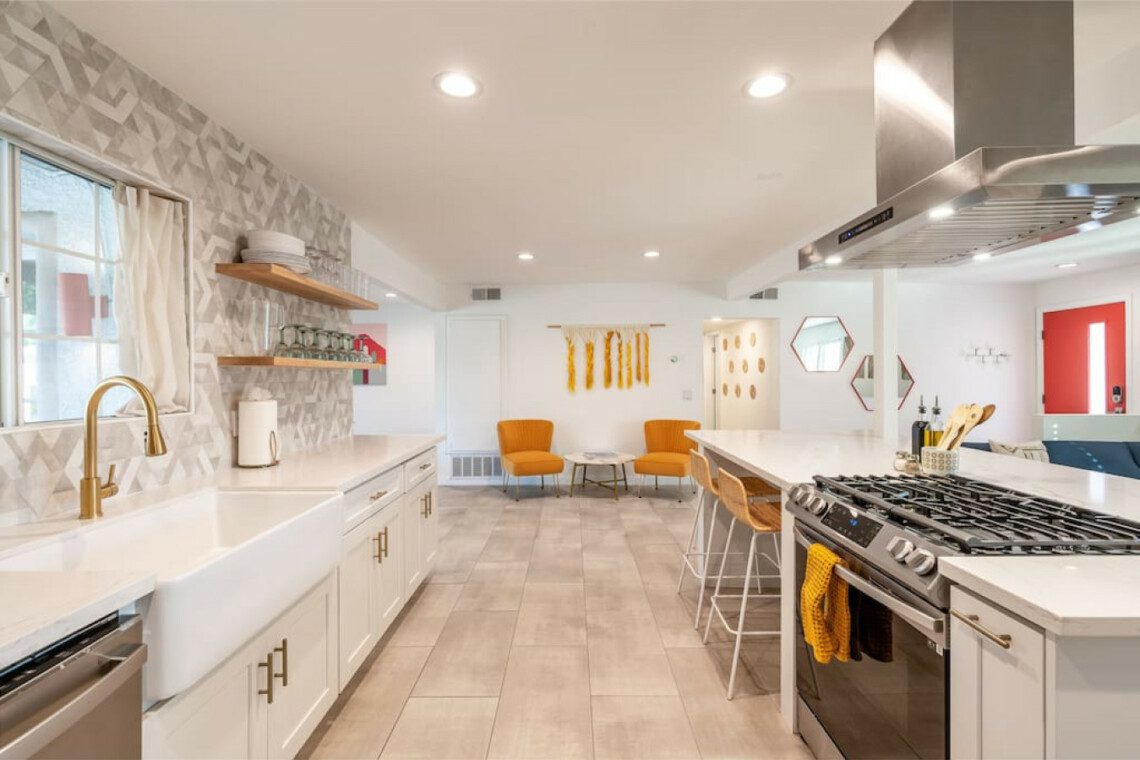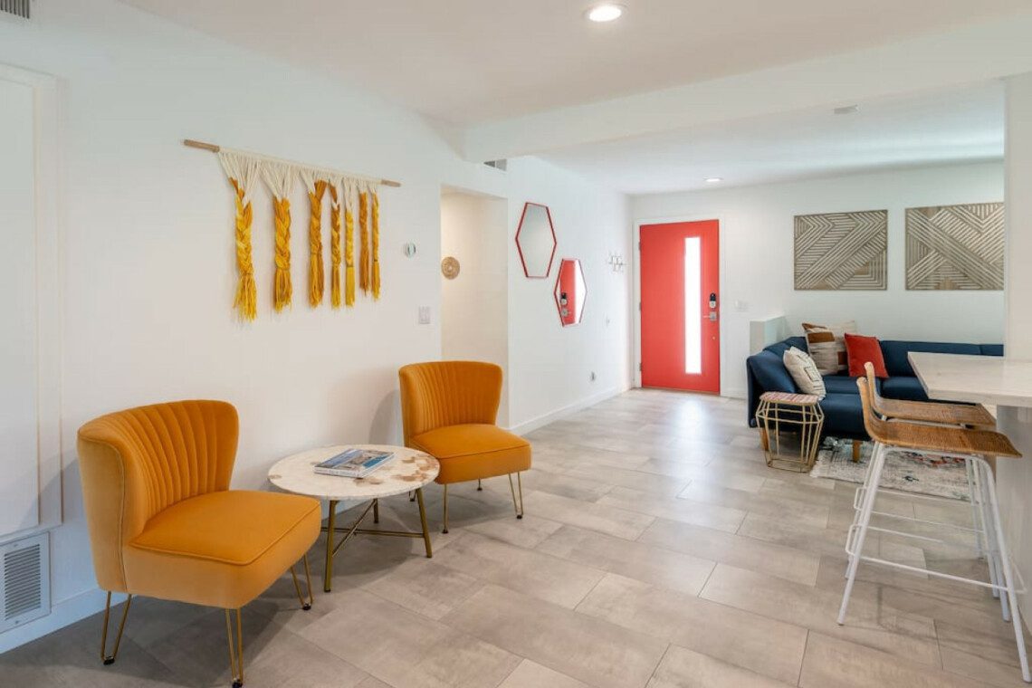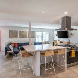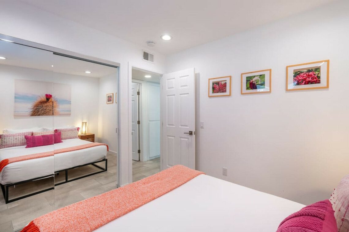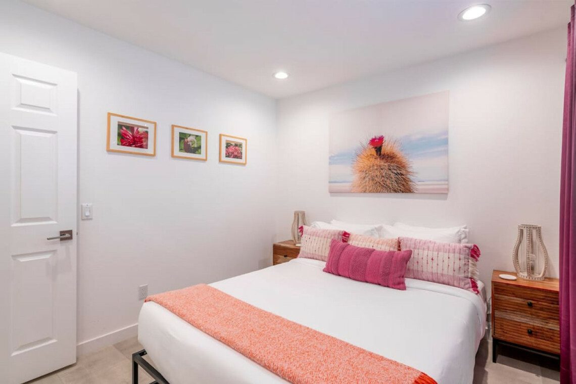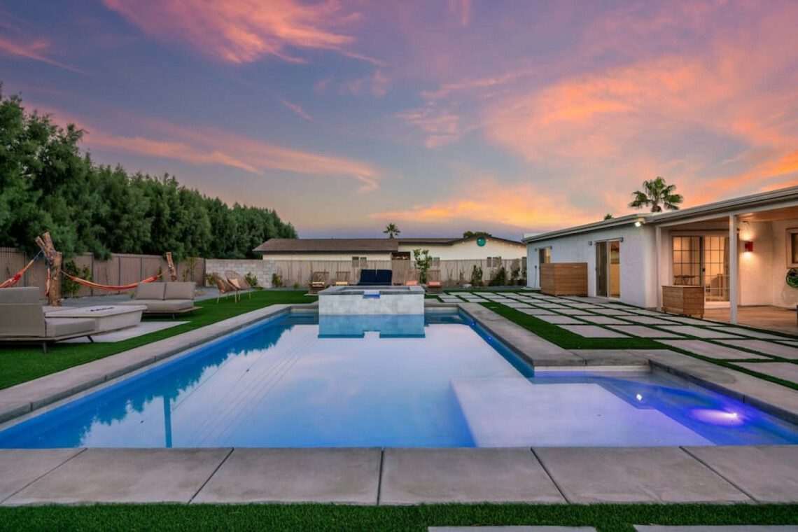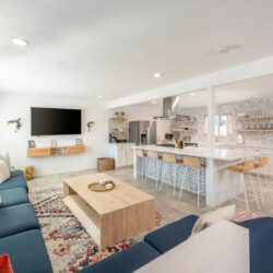 Nestled in the heart of desert paradise that is Palm Springs, Sunny Vista offers an unforgettable retreat where boho charm meets modern luxury. This 4-bedroom, 2-bathroom villa is a true gem, boasting an open-concept kitchen and living space that beckons guests to gather and savor the beauty of the desert landscape. Picture windows frame the stunning mountain views, allowing you to soak in the natural beauty of Palm Springs as you unwind in the cozy living room. The fully equipped kitchen is a chef’s dream, encouraging culinary creativity as you prepare delicious meals. With ample counter space and modern appliances, it’s the perfect hub for preparing a poolside feast or hosting a family dinner.