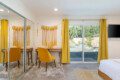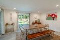 When the day’s adventures come to an end, retire to one of the four spacious bedrooms, each thoughtfully designed for comfort and tranquility. The master suite features an en-suite bathroom, designated workspace, and direct access to the pool area. The remaining bedrooms offer peaceful havens, furnished with plush bedding and boho style decor. Throughout the property, modern amenities such as high-speed Wi-Fi and a flat-screen TV keep you connected and entertained.