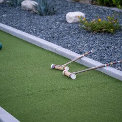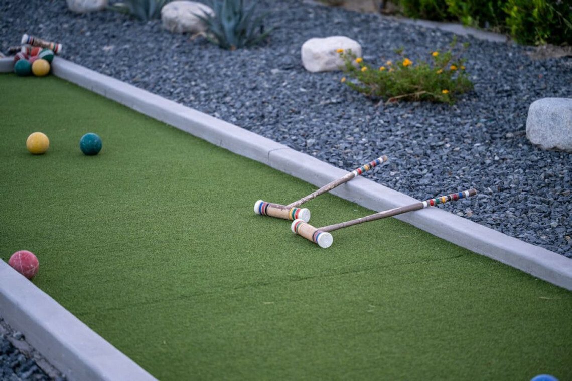 Outside you will find your own outdoor oasis with a private pool and spa that invite relaxation and rejuvenation. Lounge on the sun-soaked deck, take a refreshing dip in the crystal-clear waters, or soak away the day’s adventures in the spa. For those seeking entertainment and recreation, the property features a putting green, perfect for sharpening your golf skills while enjoying the desert breeze, and a croquet lawn that invites friendly competition. As the sun begins to set, fire up the outdoor grill and dine al fresco on the covered patio or melt away in one of the six hammocks to watch the setting sun. Whatever you’re looking for, Sunny Vista will not disappoint!
