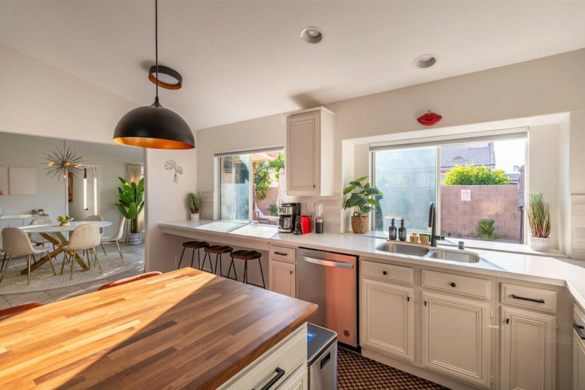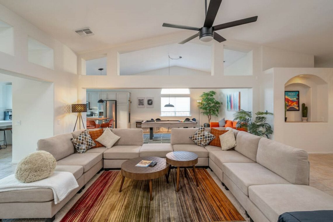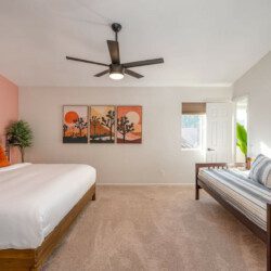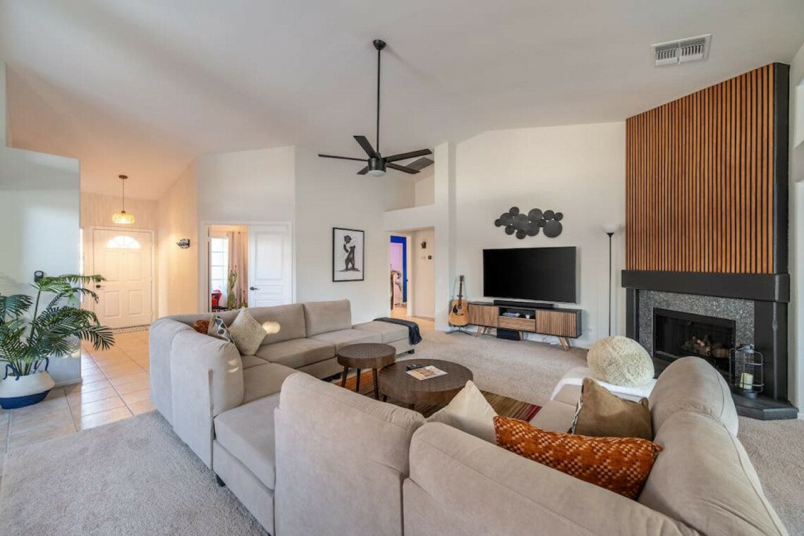 Welcome to The Crescendo, nestled in the heart of Indio and only 30 minutes from downtown Palm Springs! This 4-bedroom, 2-bathroom is more than just a place to stay; it’s an immersive experience in mid-century vibrancy and musical inspiration. The Crescendo is a true gem that captures the essence of both an era and a spirit, offering an unforgettable blend of vibrancy, nostalgia, and comfort, providing the perfect backdrop for your getaway in the desert.