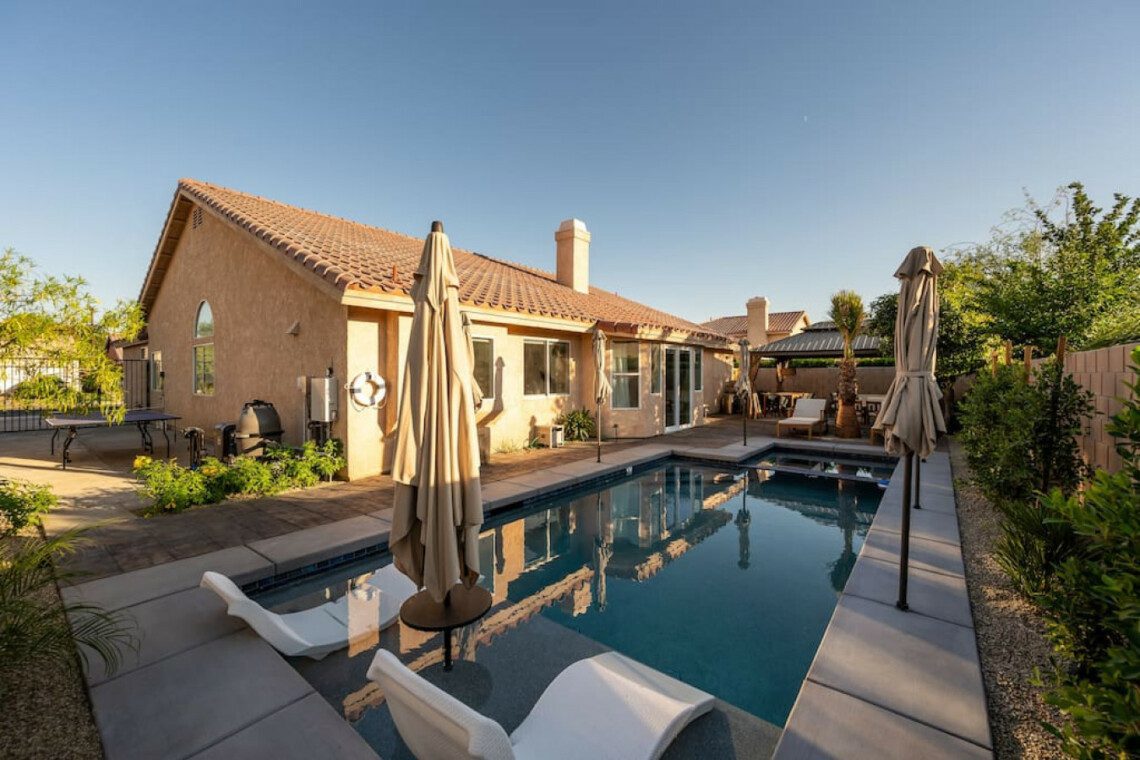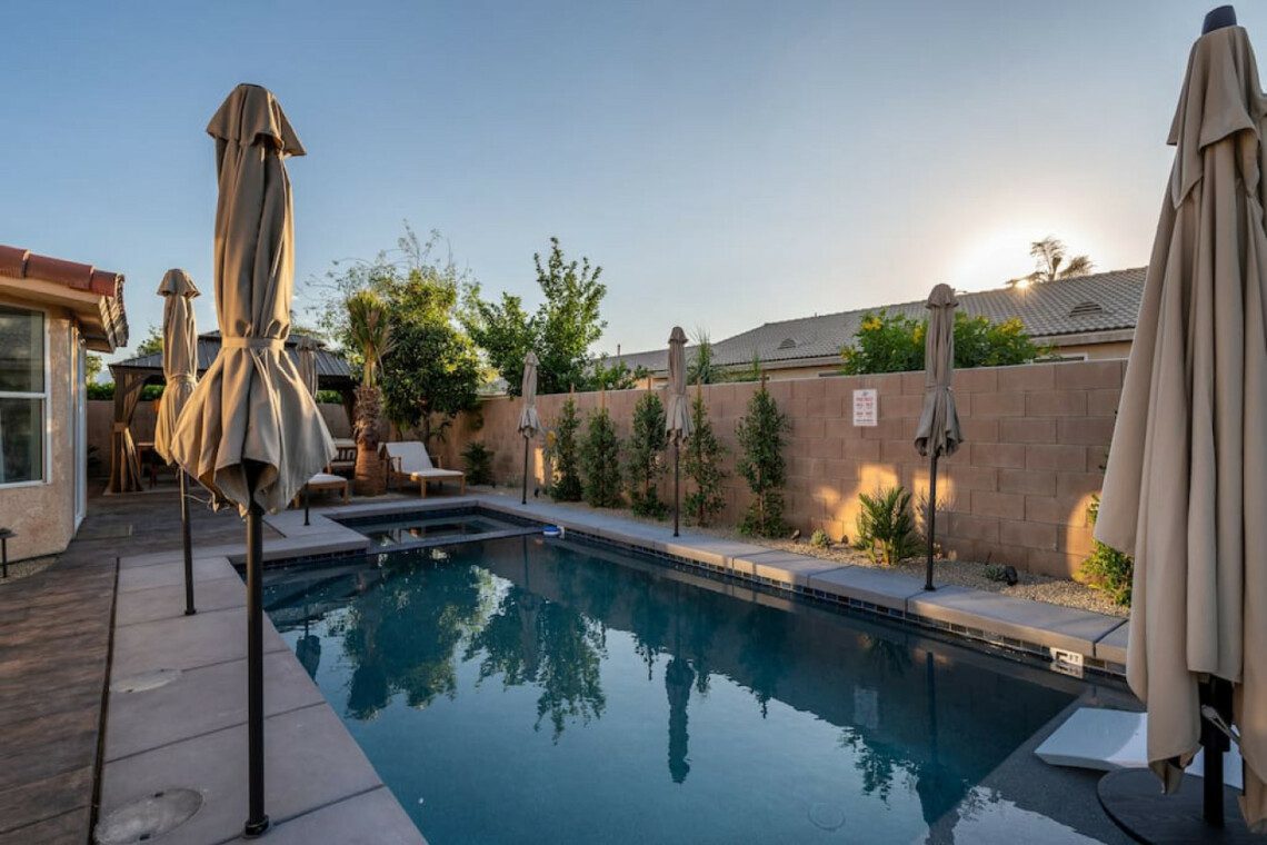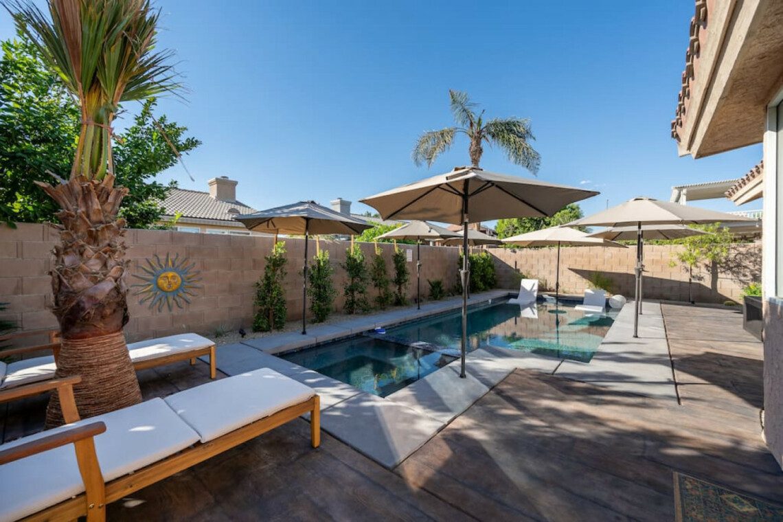 ●Pool & Spa: Built in 2023, smart automation system with easy spa control (pool heating: $75/day), baja tanning shelf with 2 in-pool chaise loungers, 2 sun chaise loungers, patio umbrellas