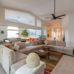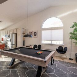 The Crescendo is not only a feast for the senses but also a comfortable haven for your group. With four bedrooms and two bathrooms, there’s ample space for everyone to enjoy their privacy. The spacious living area is perfect for socializing, with the adjoining music room offering vintage vinyl to enjoy while playing a game of billiards. The fully equipped kitchen invites you to create delicious meals or mix up crafted cocktails. The outdoor space is equally enticing, with well-maintained landscaping, a barbecue grill for al fresco dining, and a newly built pool and spa where you can cool off in style.