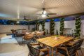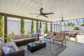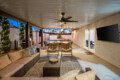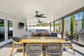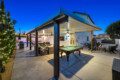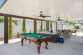 ●Covered Pergola: Propane stainless steel 4-burner grill with 8-person table for al fresco dining, seating area with 60″ smart TV, 7ft pool table