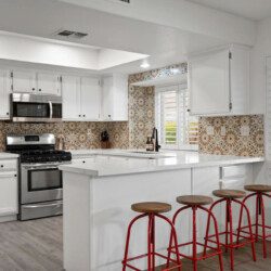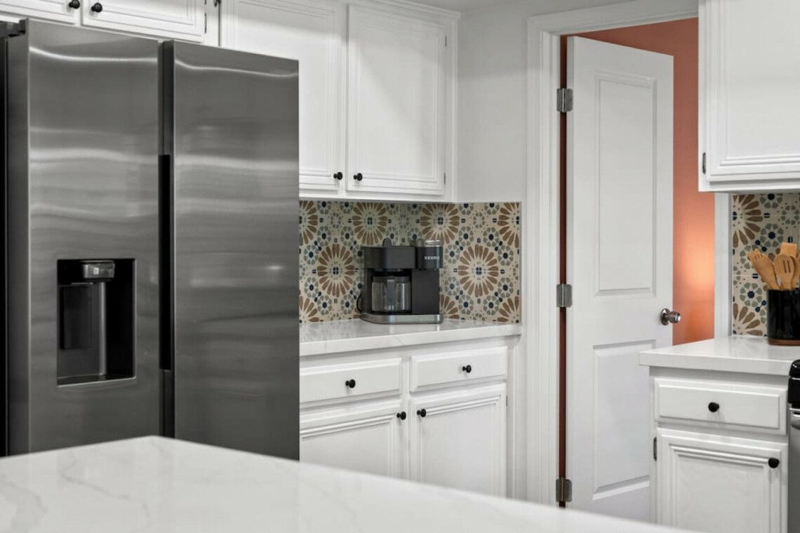 This home accommodates up to 18 guests with 6 bedrooms and 3 bathrooms. Additional spaces include a fully stocked kitchen, living room, dining room, den, laundry area, and garage. Our kitchen is stocked with an extensive list of small appliances, cookware, dinnerware and utensils needed to prepare almost any family meal. We provide a starter kit of seasonings including salt, pepper and olive oil. Please inquire with our team if you would like a complete list of all our cookware and small appliances.